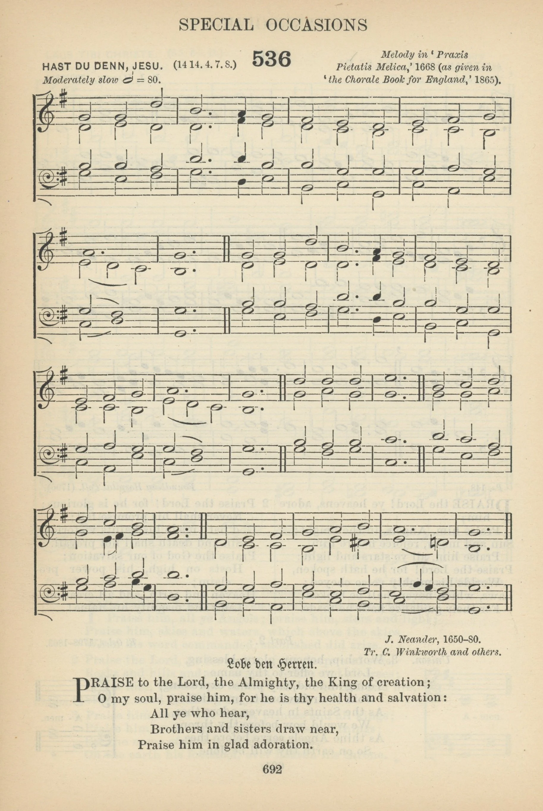 Robin Leaver, “Praise to the Lord, the Almighty,” The Hymnal 1982 Companion, vol. 3B (NY: Church Hymnal Corp., 1994), no. 390.